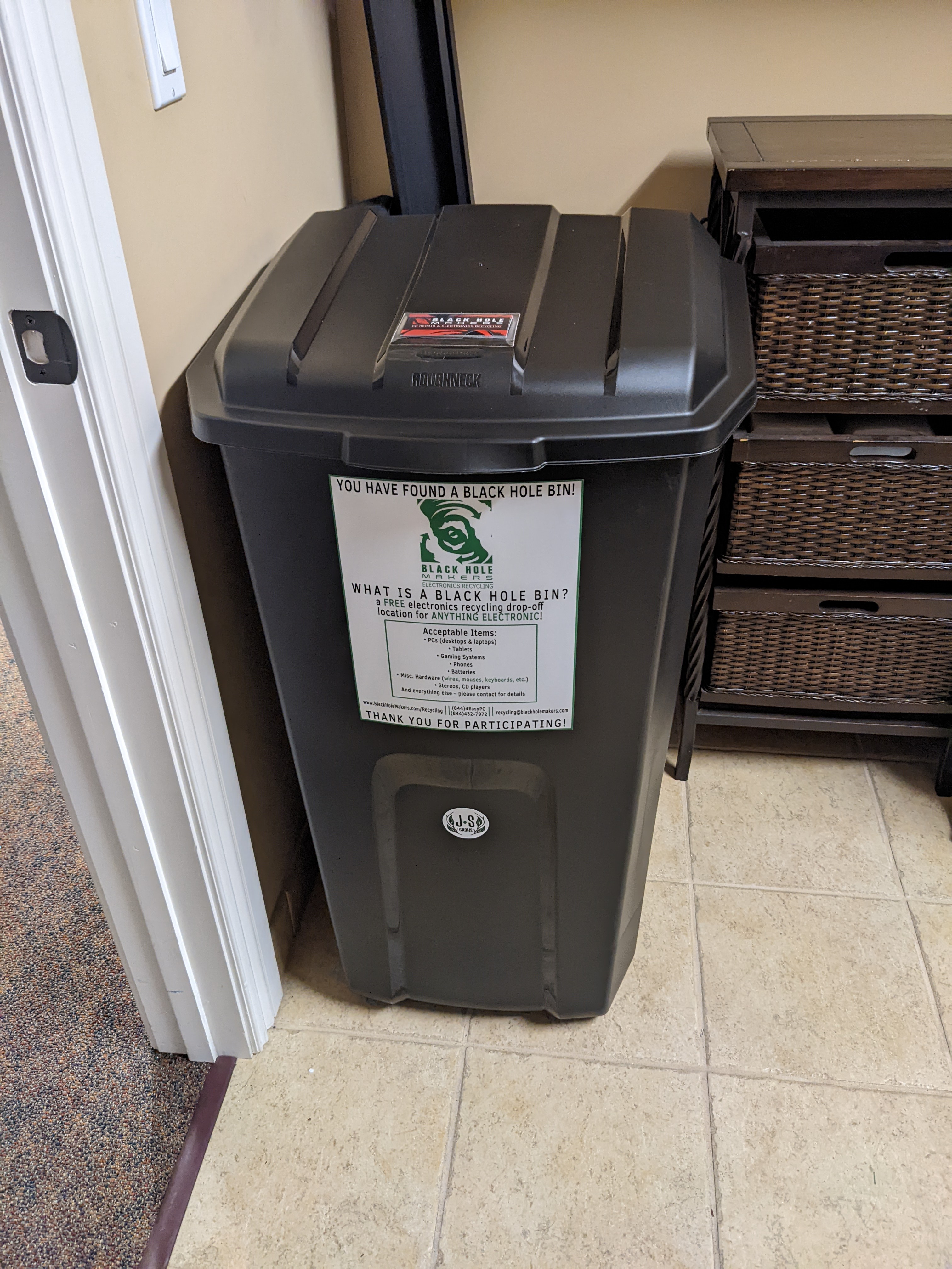 ♻️ Private Black Hole Bins help to facilitate electronics recycling within companies and are not public drop off points. Please see the public Black hole Bins above for a public drop-off point.